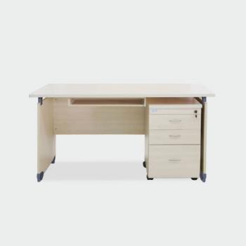 Bàn văn phòng làm bằng gỗ MFC màu vân gỗ sáng H2102 cao cấp. Bàn kết hợp với ngăn bàn phím và hộc di động 3 ngăn kéo.
