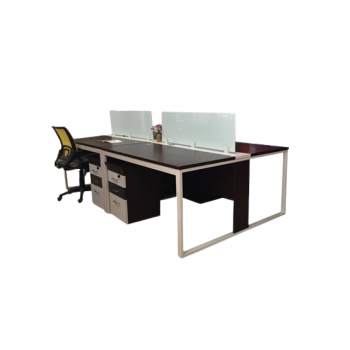Hệ modul cho 2 người ngồi. Hệ modul có vách ngăn bằng kính, hệ chân thép chắc chắn, thông thoáng, tối đa hóa không gian sử dụng (không hộc)